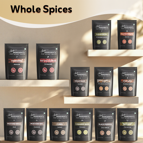 From traditionally pounded spices to whole spices, wholesome seeds, dry fruits, and seasonings, we blend age-old wisdom with modern standards to deliver freshness, flavour, and care in every pack.