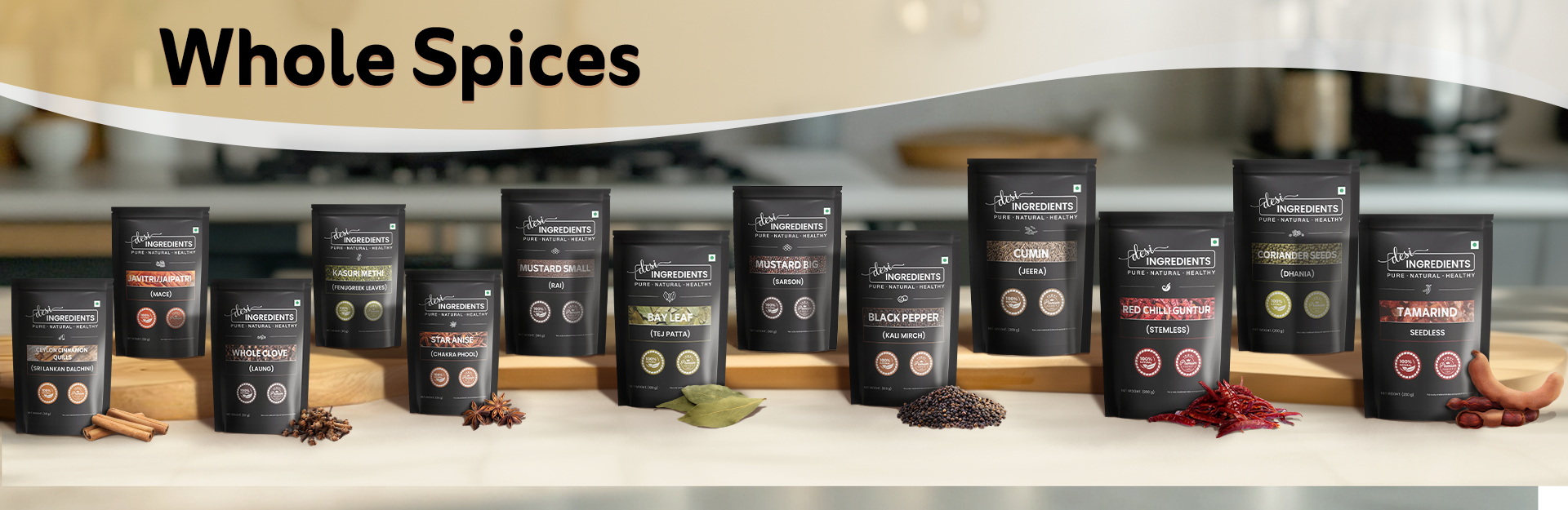 From traditionally pounded spices to whole spices, wholesome seeds, dry fruits, and seasonings, we blend age-old wisdom with modern standards to deliver freshness, flavour, and care in every pack.