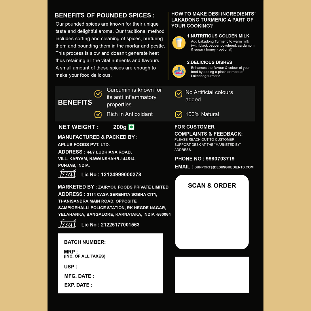 - Versatile Usage – Perfect for curries, soups, haldi doodh, turmeric lattes, smoothies, and DIY skincare remedies.